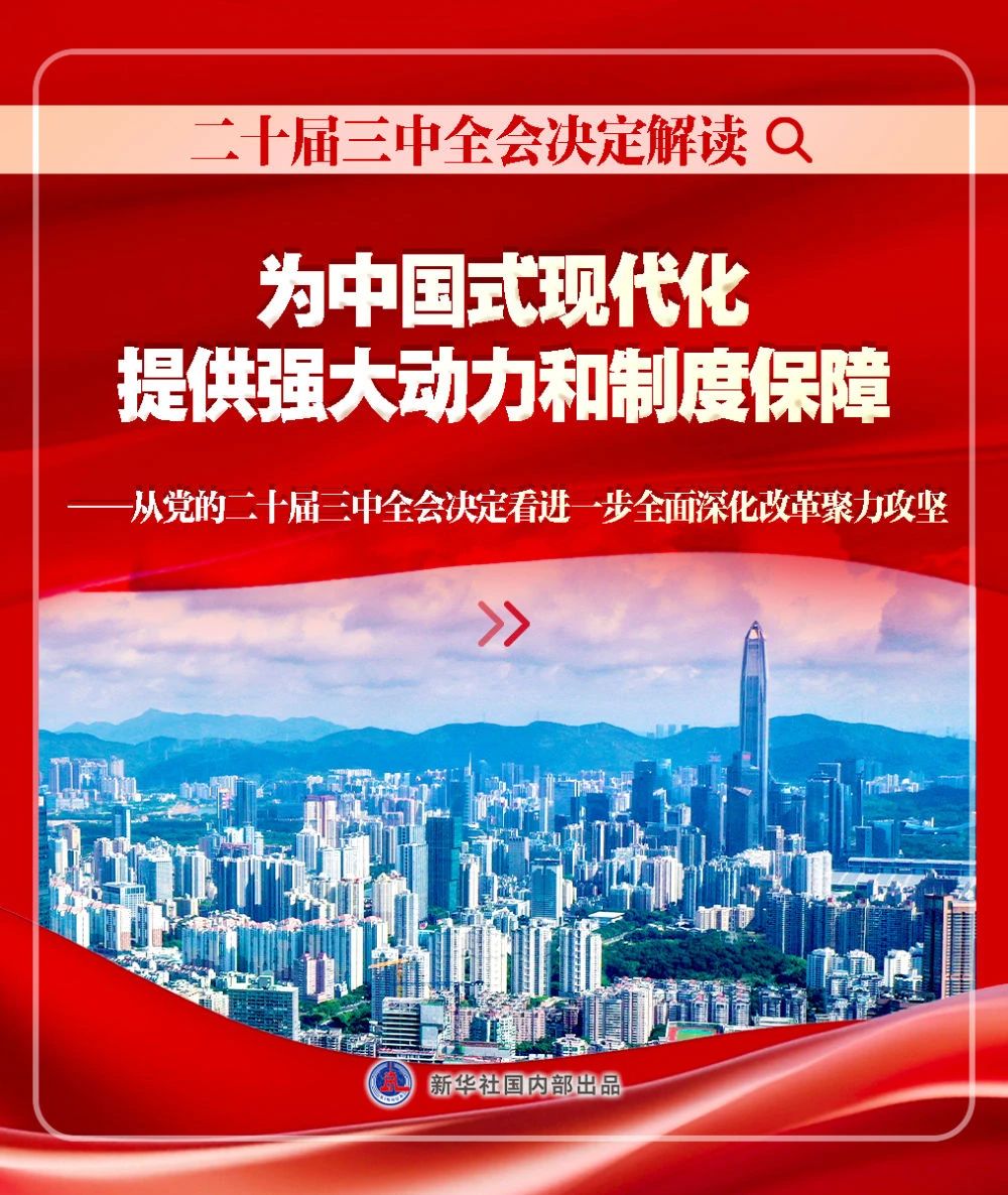 7月21日,《中共中央關(guān)于進(jìn)一步全面深化改革、推進(jìn)中國(guó)式現(xiàn)代化的決定》發(fā)布。新華社推出一系列解讀報(bào)道,深入闡釋黨的二十屆三中全會(huì)決定。..[2024-09-03]
