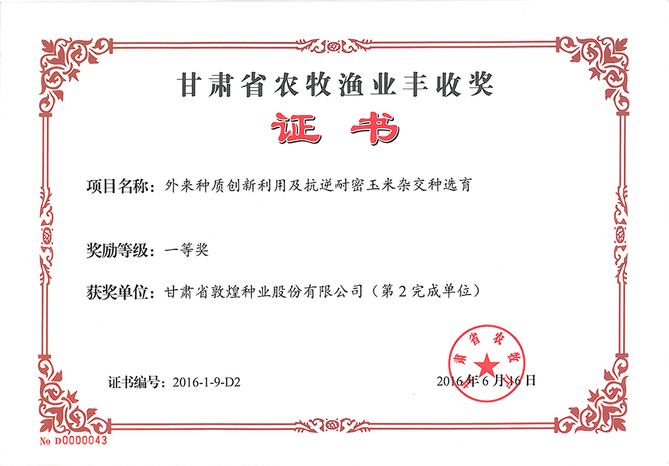 2015年甘肅省農(nóng)牧漁業(yè)豐收獎一等